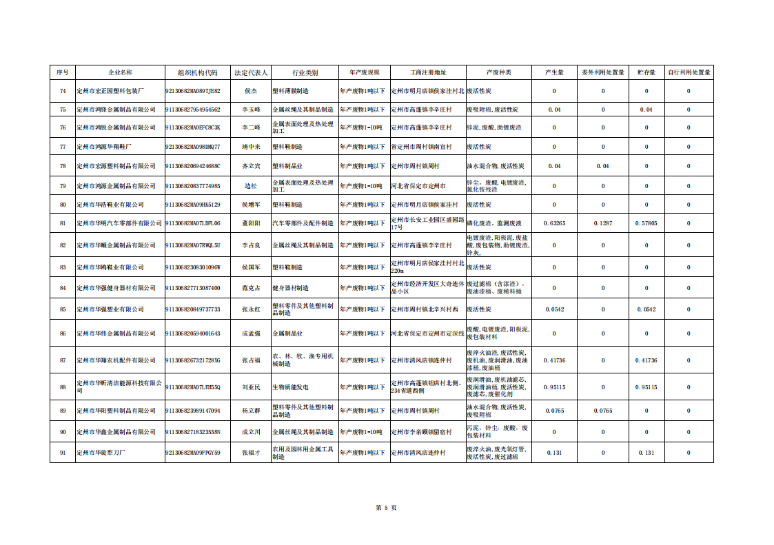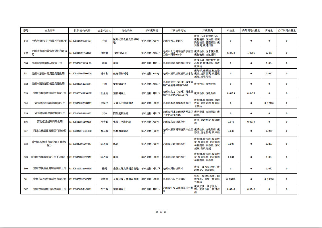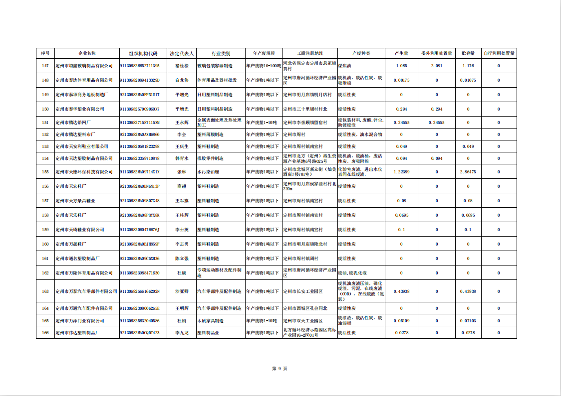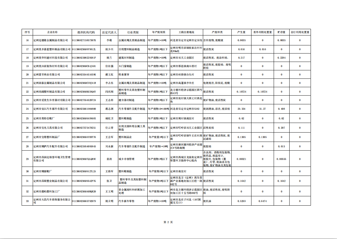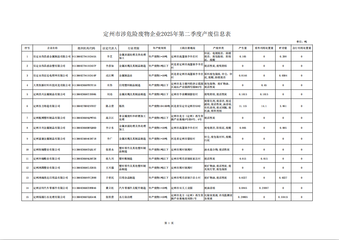 定州市涉危險廢物企業(yè)2025年第二季度產(chǎn)廢信息表