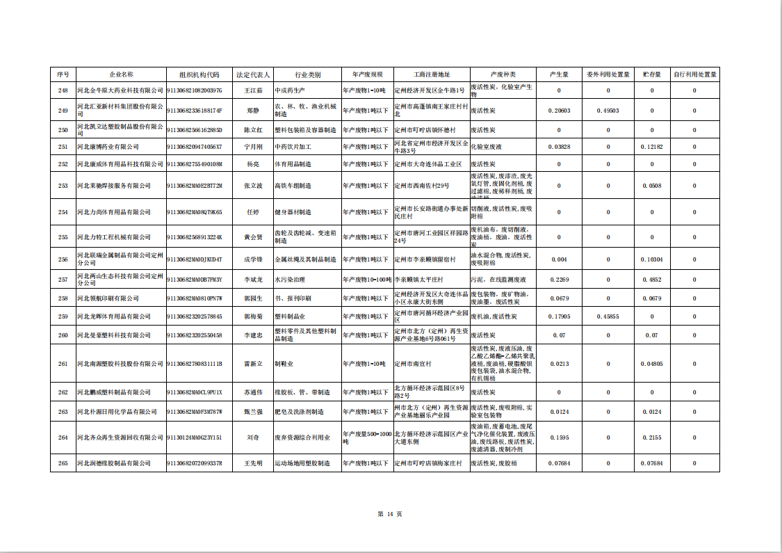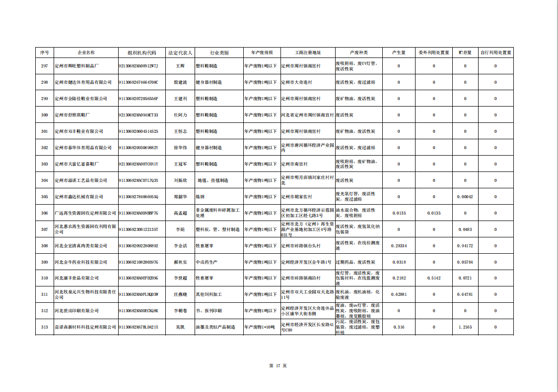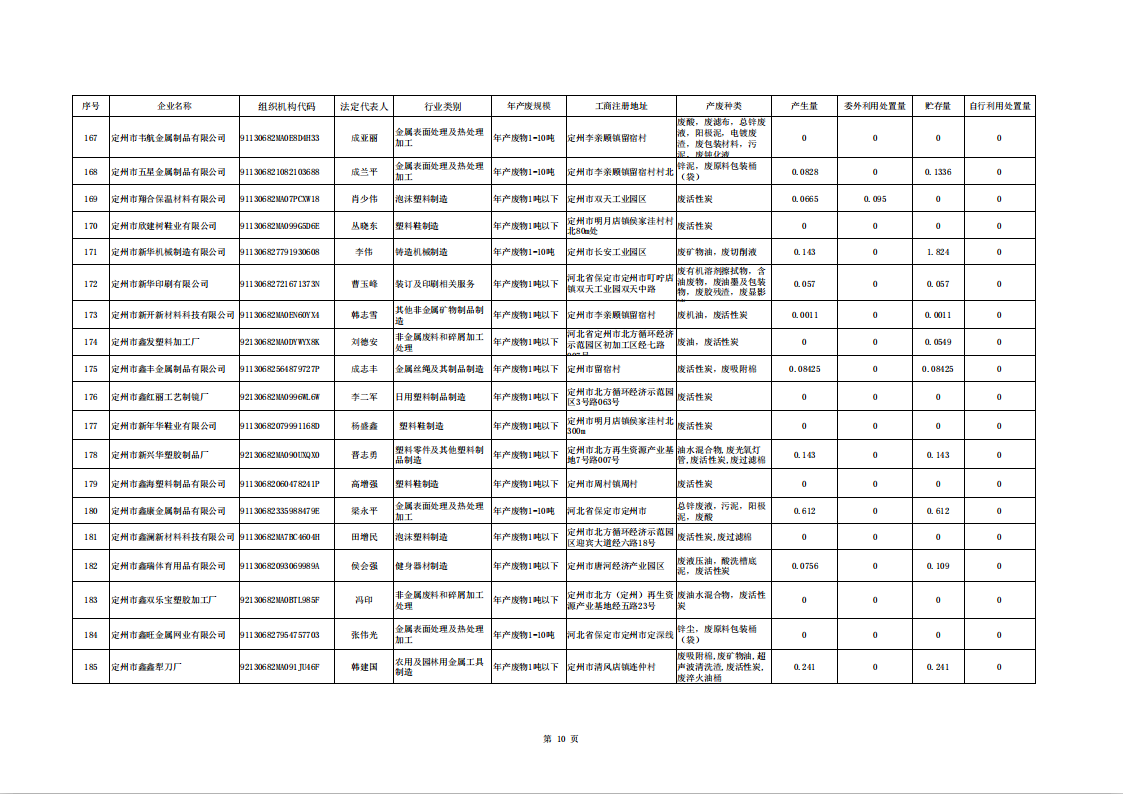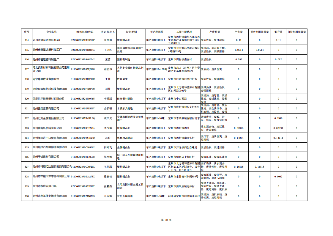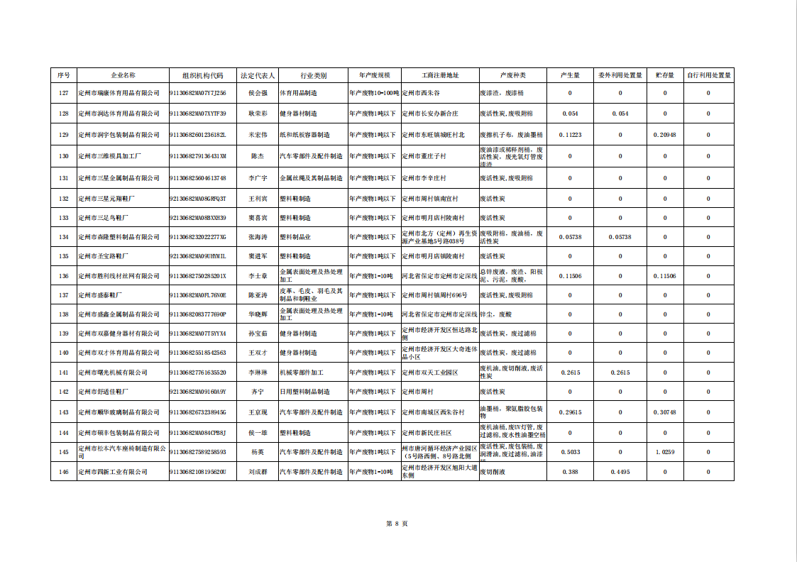 定州市涉危險廢物企業(yè)2025年第二季度產(chǎn)廢信息表