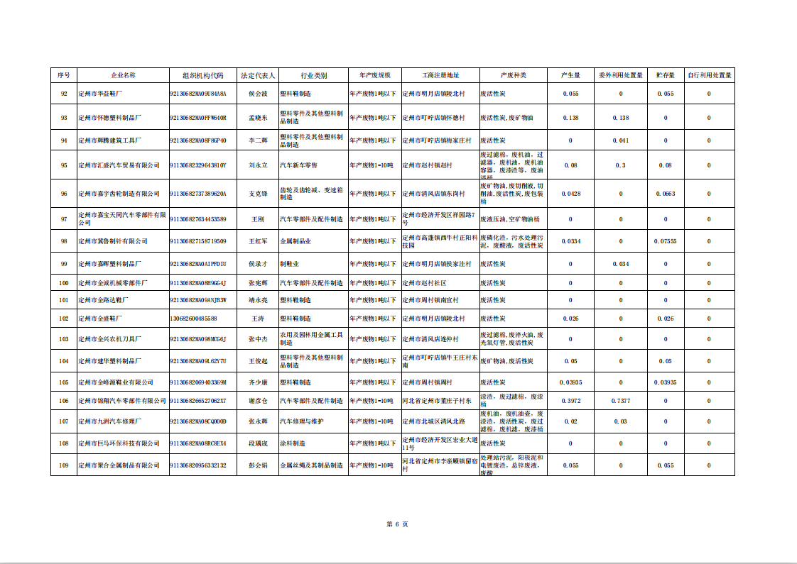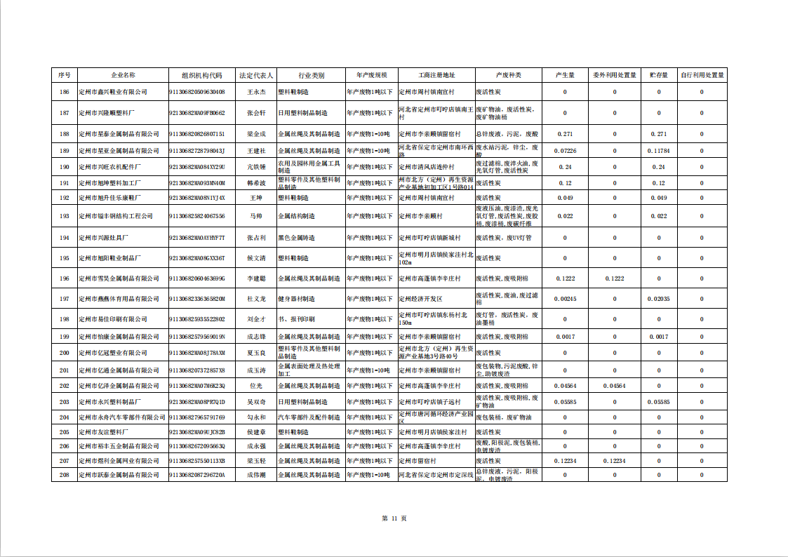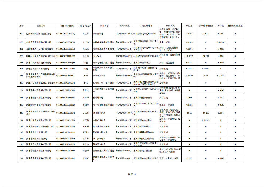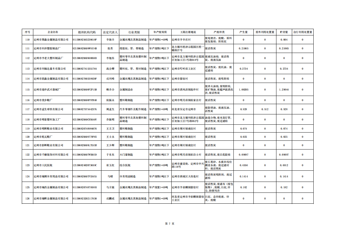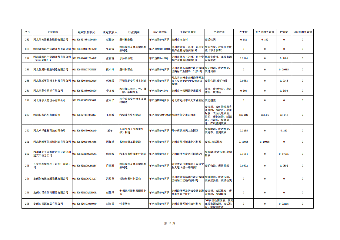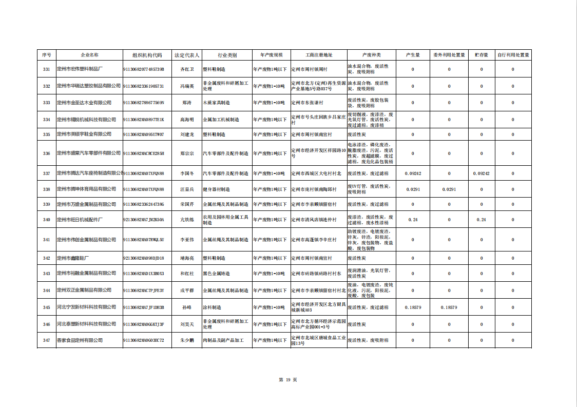 定州市涉危險廢物企業(yè)2025年第二季度產(chǎn)廢信息表