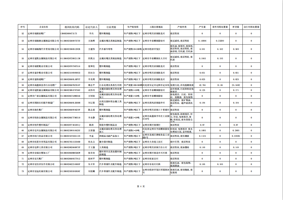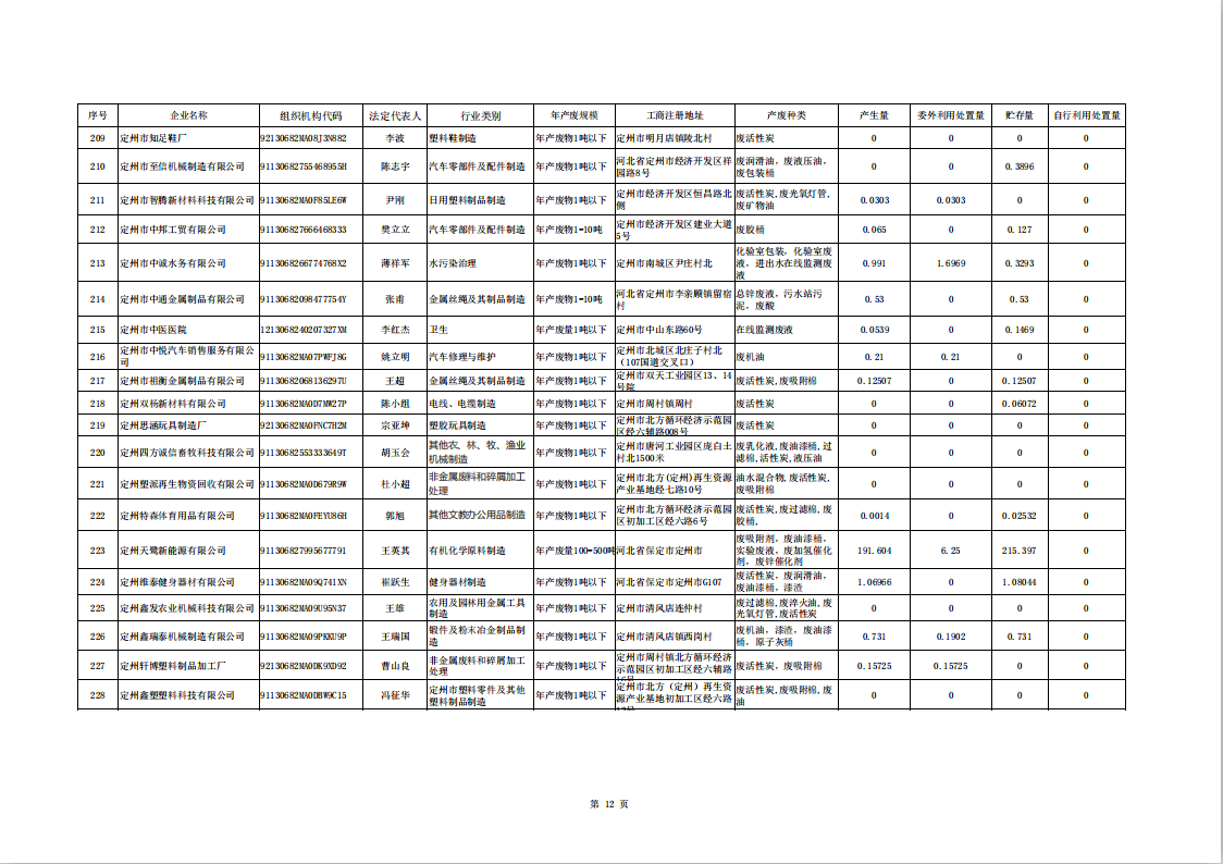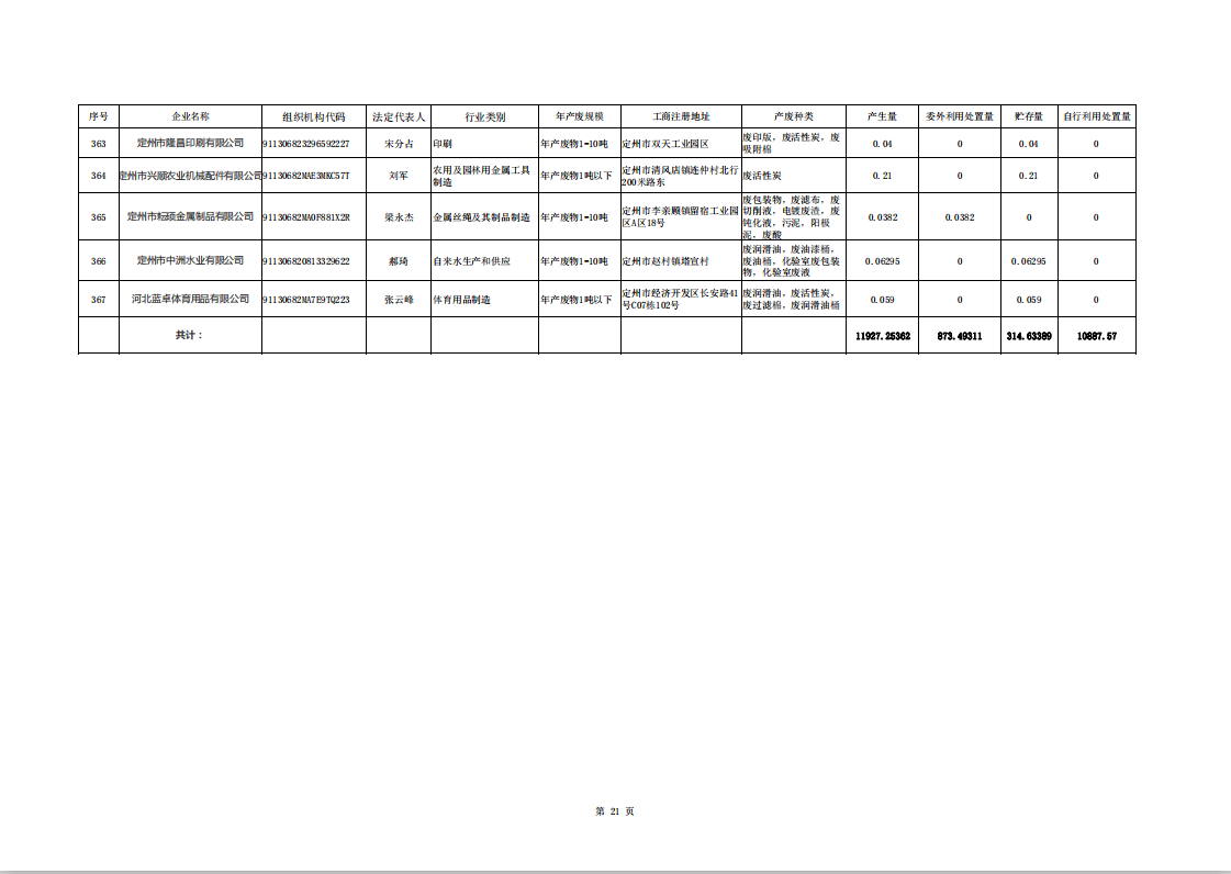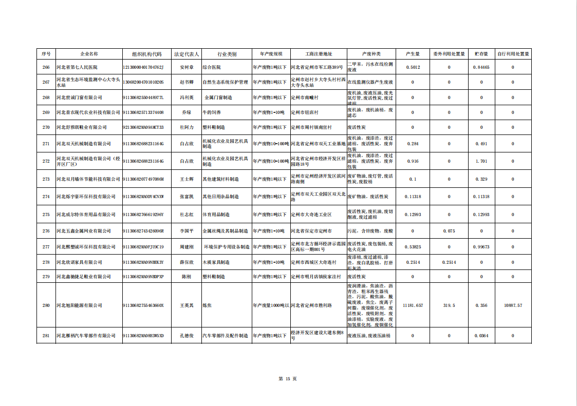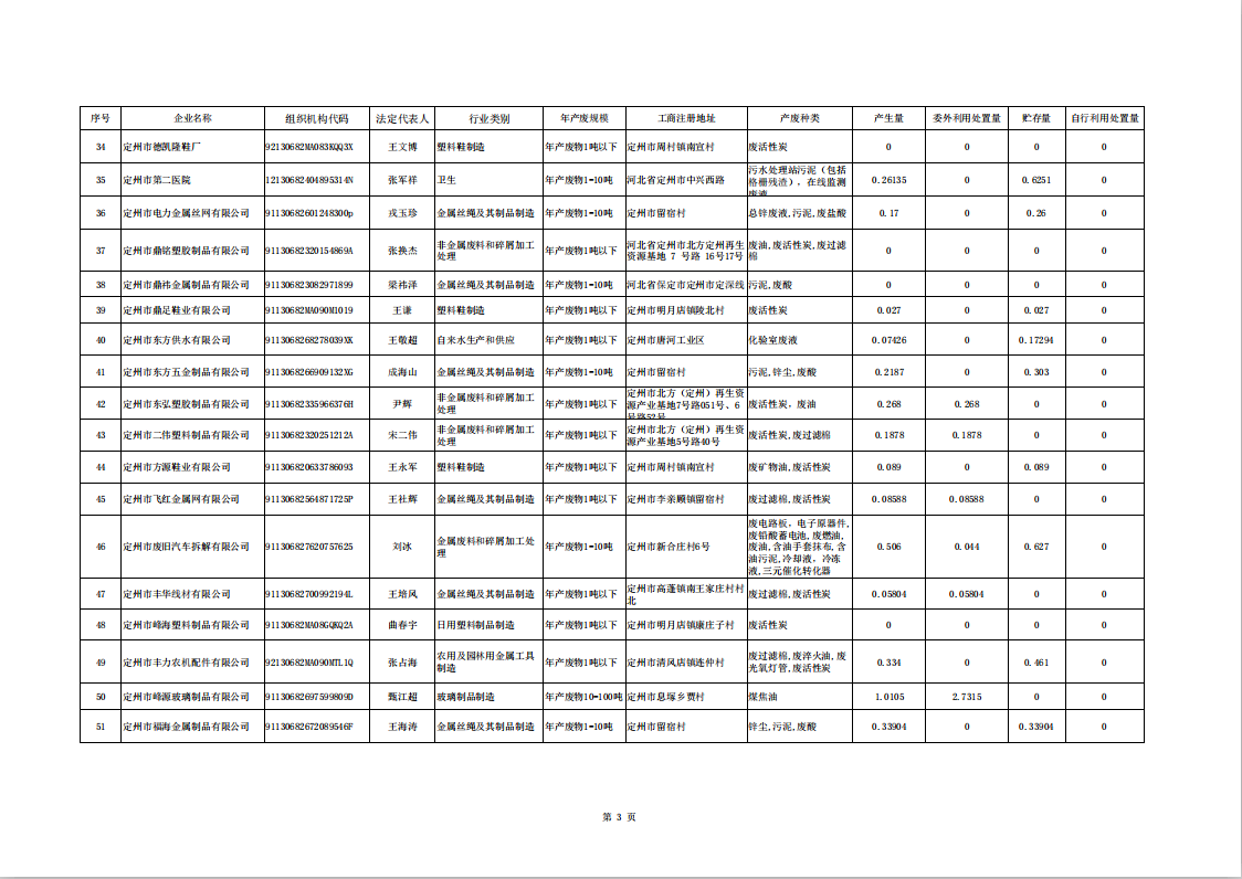 定州市涉危險廢物企業(yè)2025年第二季度產(chǎn)廢信息表