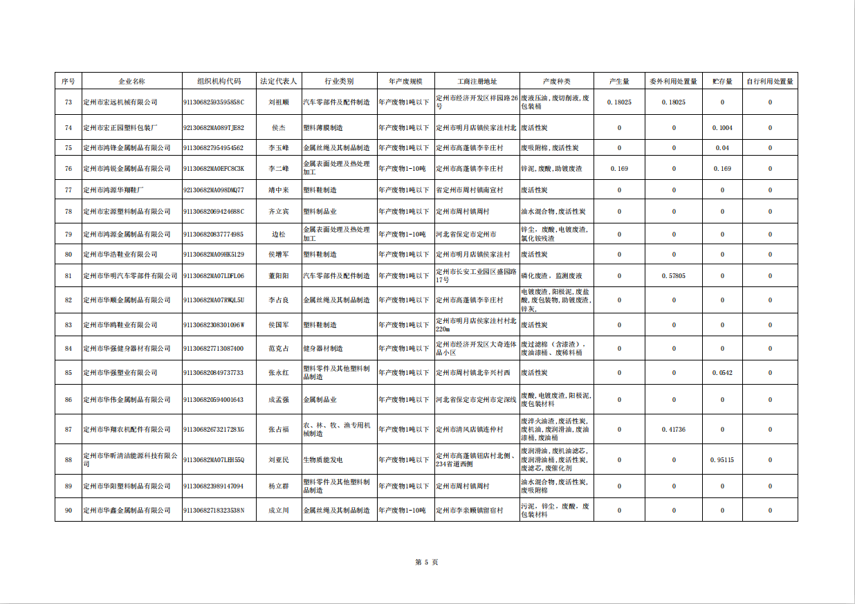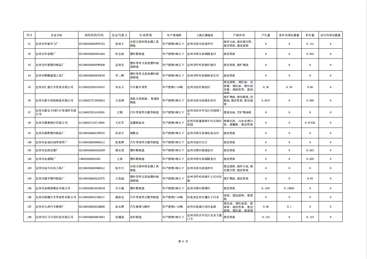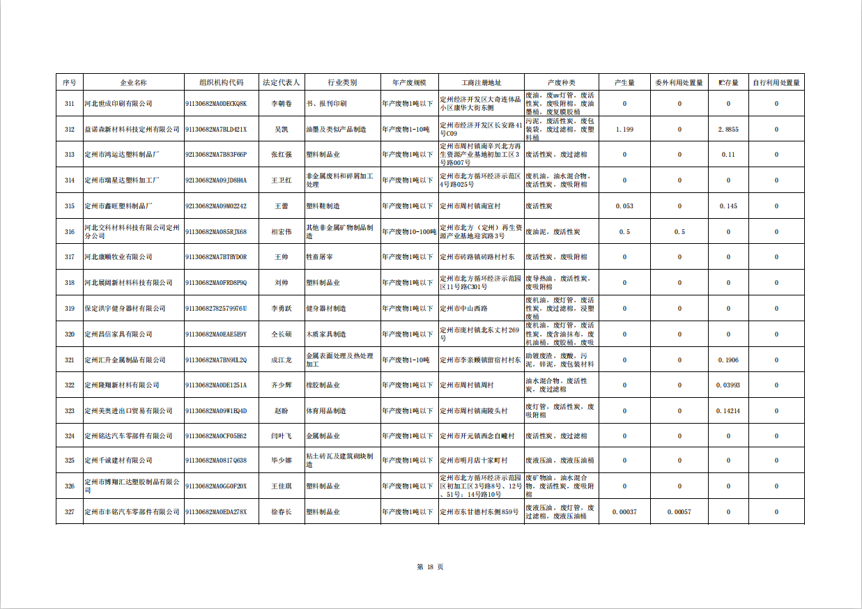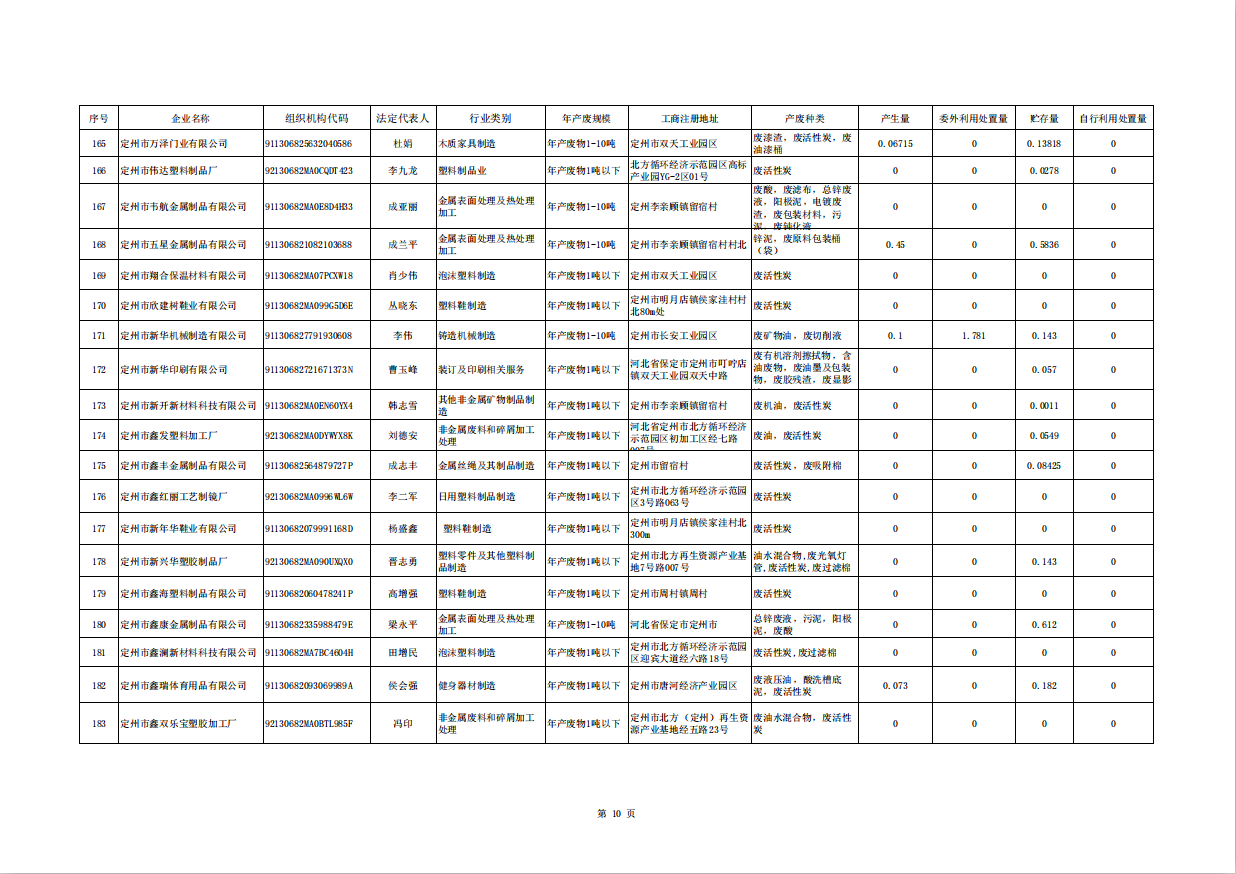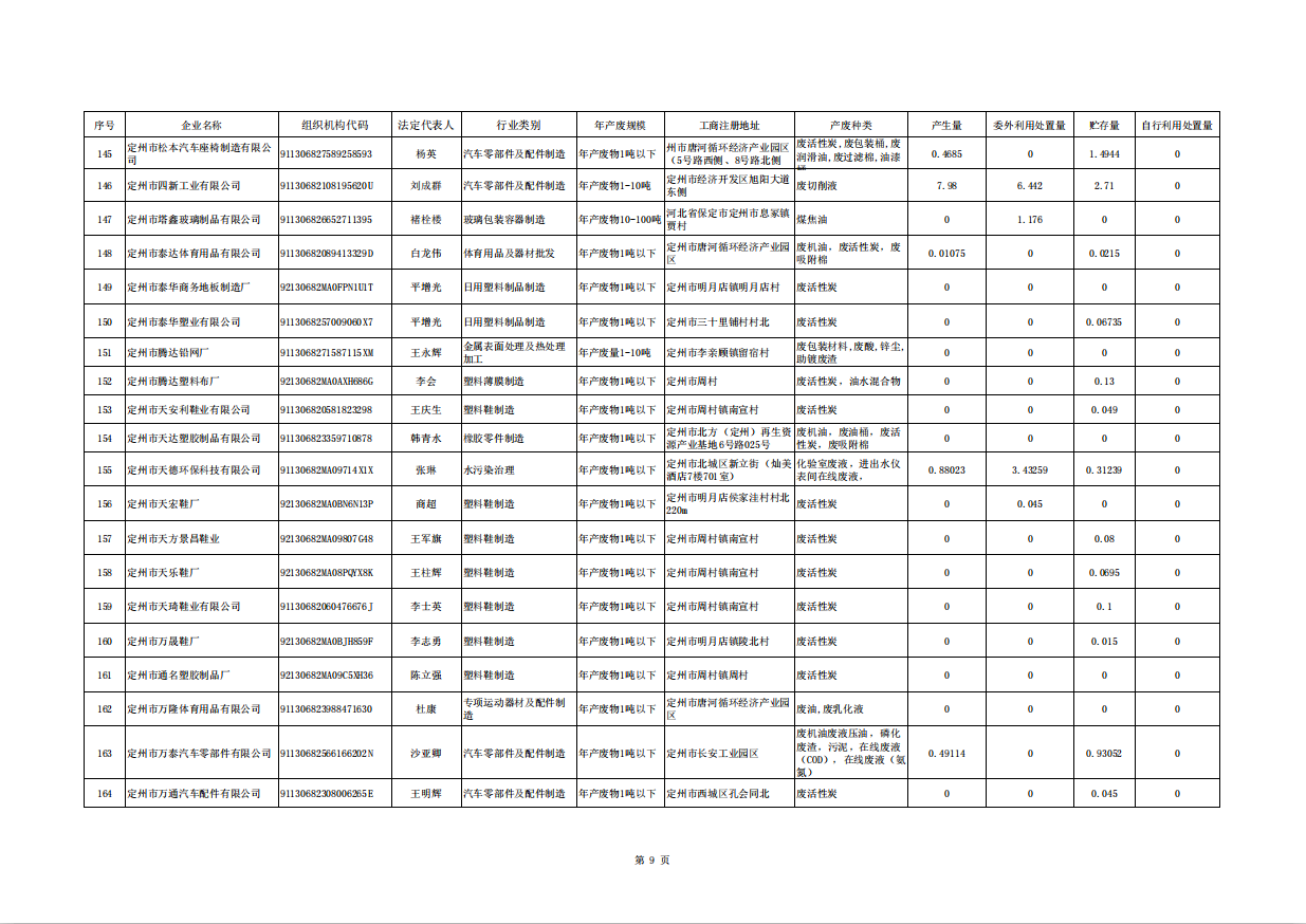 定州市涉危險廢物企業(yè)2025年第三季度產(chǎn)廢信息表