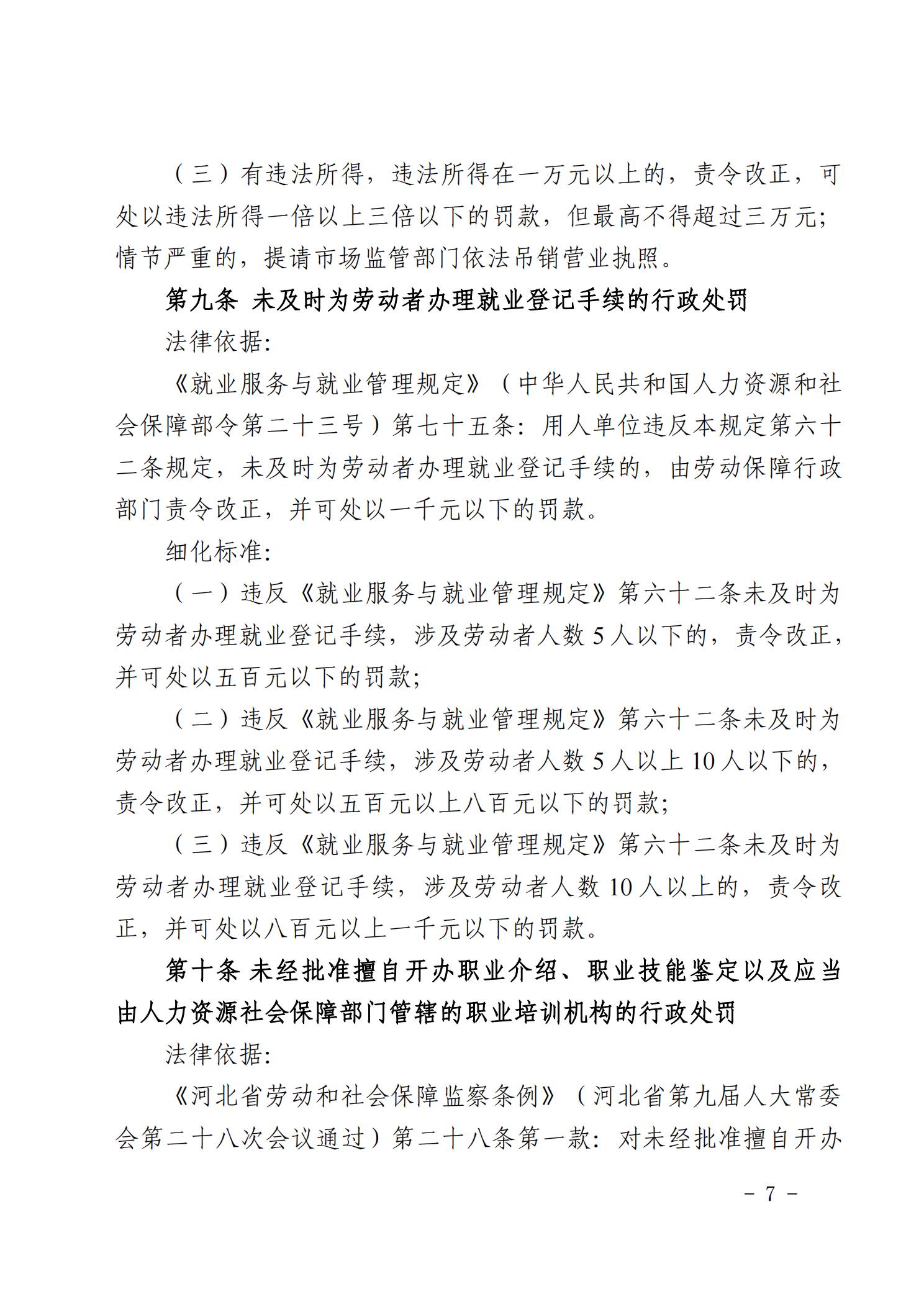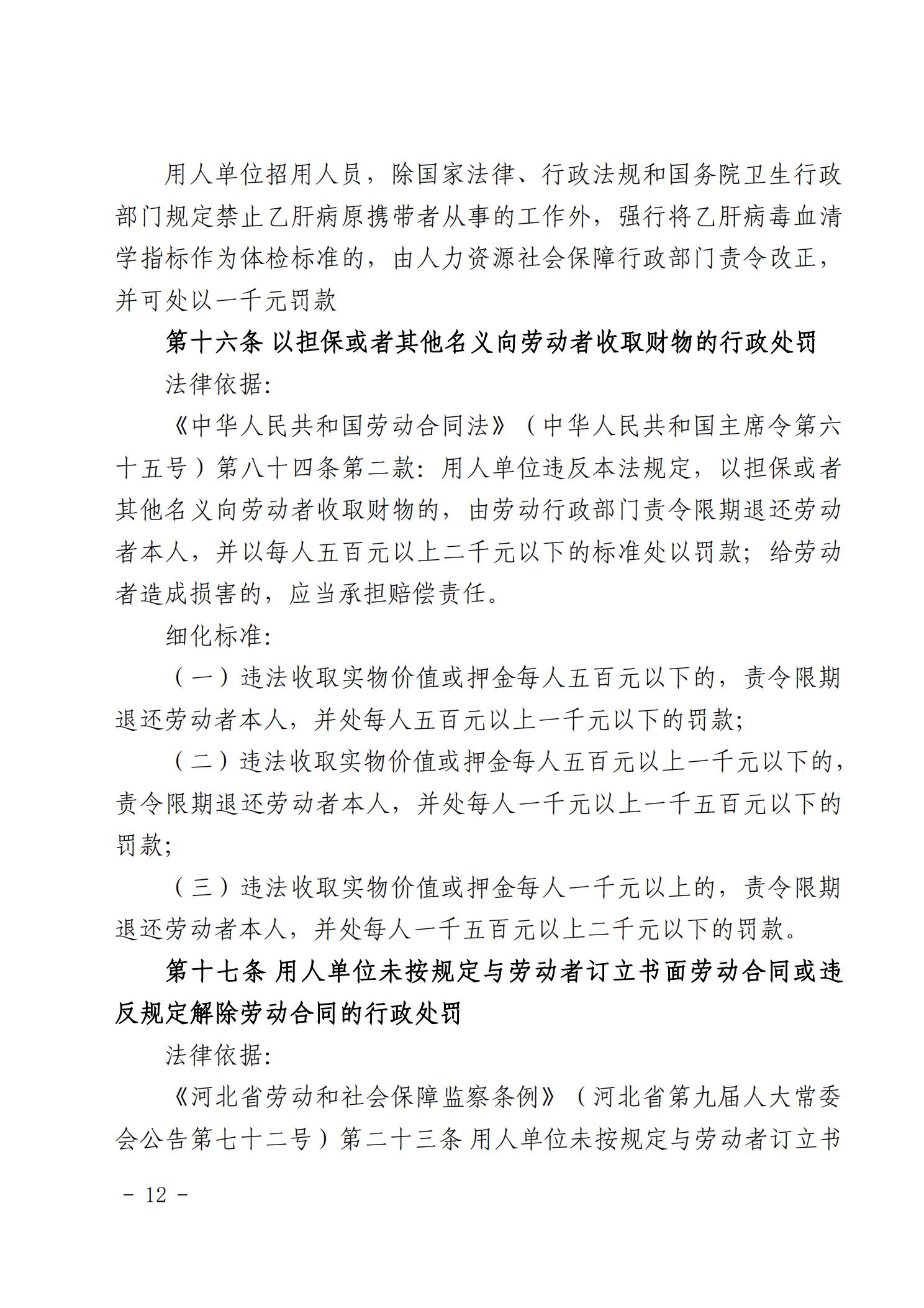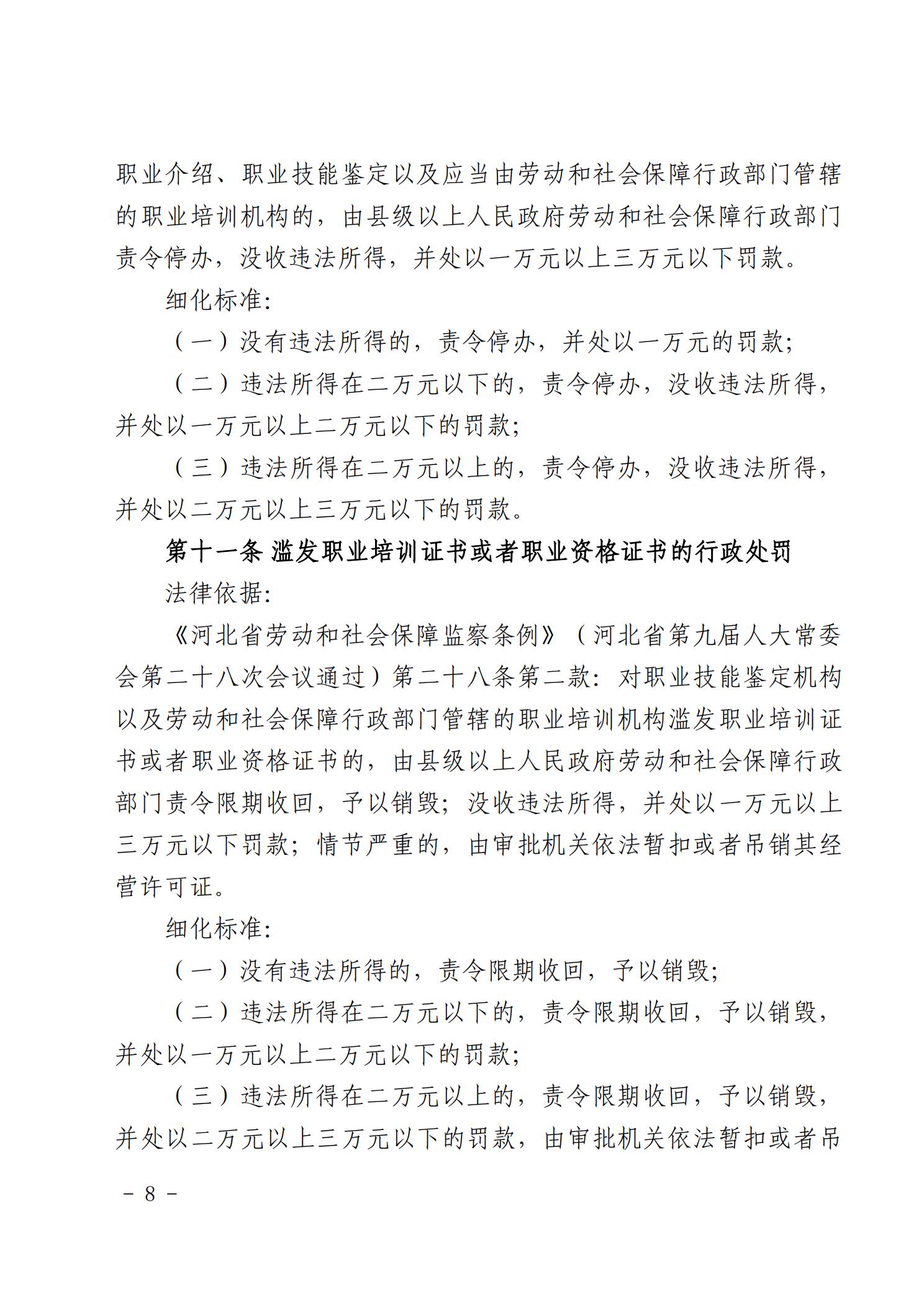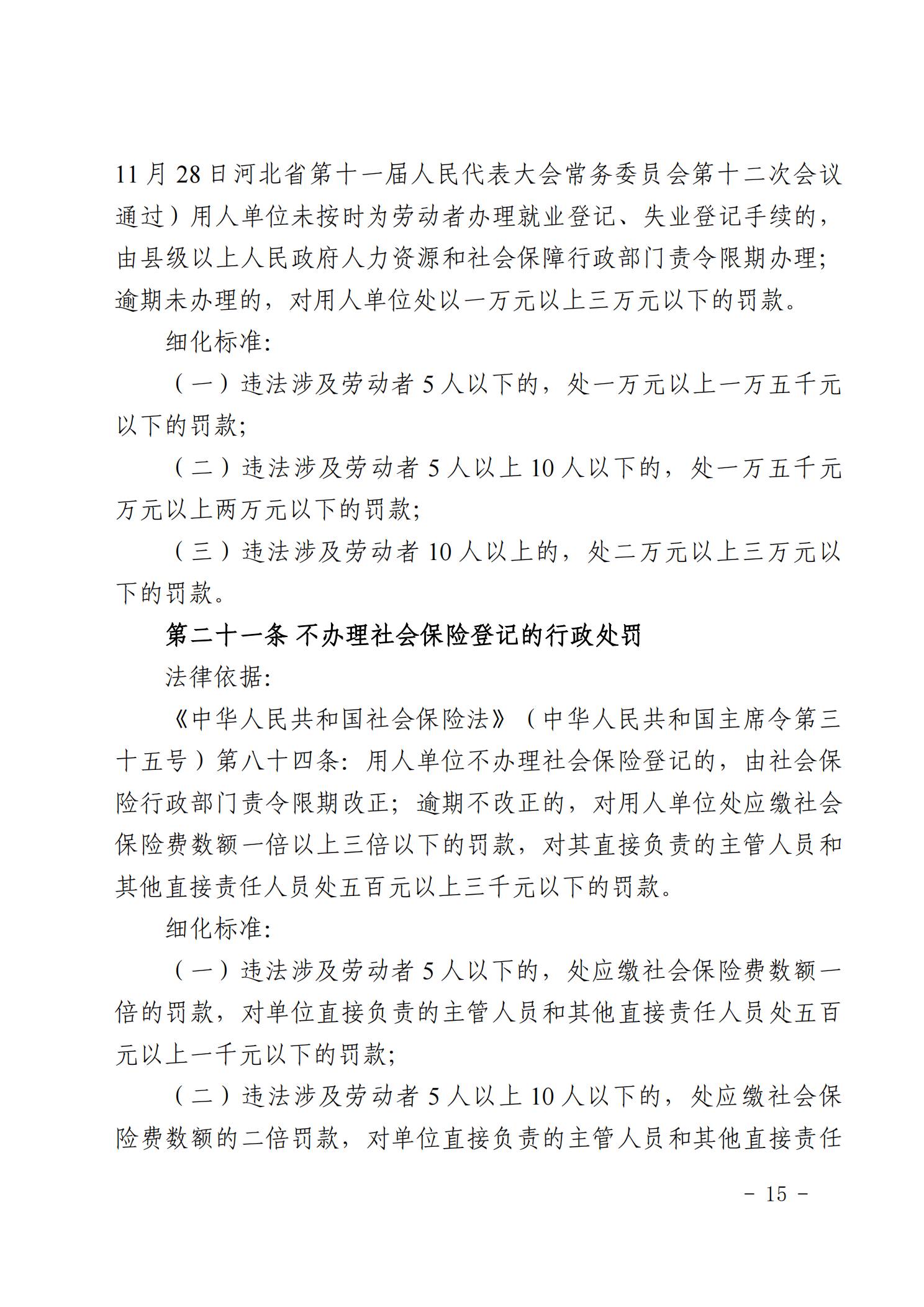 定州市人力資源社會保障系統(tǒng)行政處罰自由裁量權細化標準