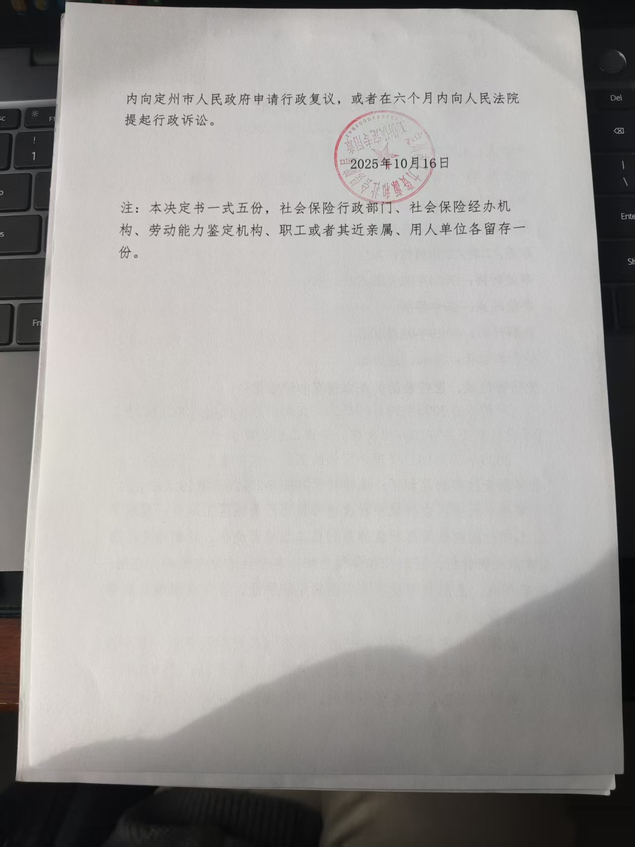 朱軍偉認定工傷決定書