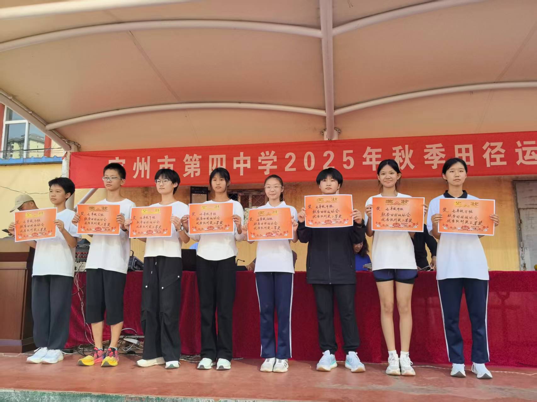 經(jīng)過(guò)兩天緊張激烈的角逐,運(yùn)動(dòng)會(huì)于2025年9月29日下午圓滿落下帷幕。閉幕式上,大會(huì)總裁判長(zhǎng)宣布了比賽成績(jī)和獲獎(jiǎng)名單。校領(lǐng)導(dǎo)為獲得團(tuán)體總分前六名的班級(jí)、精神文明獎(jiǎng)的集體以及破紀(jì)錄的運(yùn)動(dòng)員頒發(fā)了獎(jiǎng)狀和獎(jiǎng)杯。