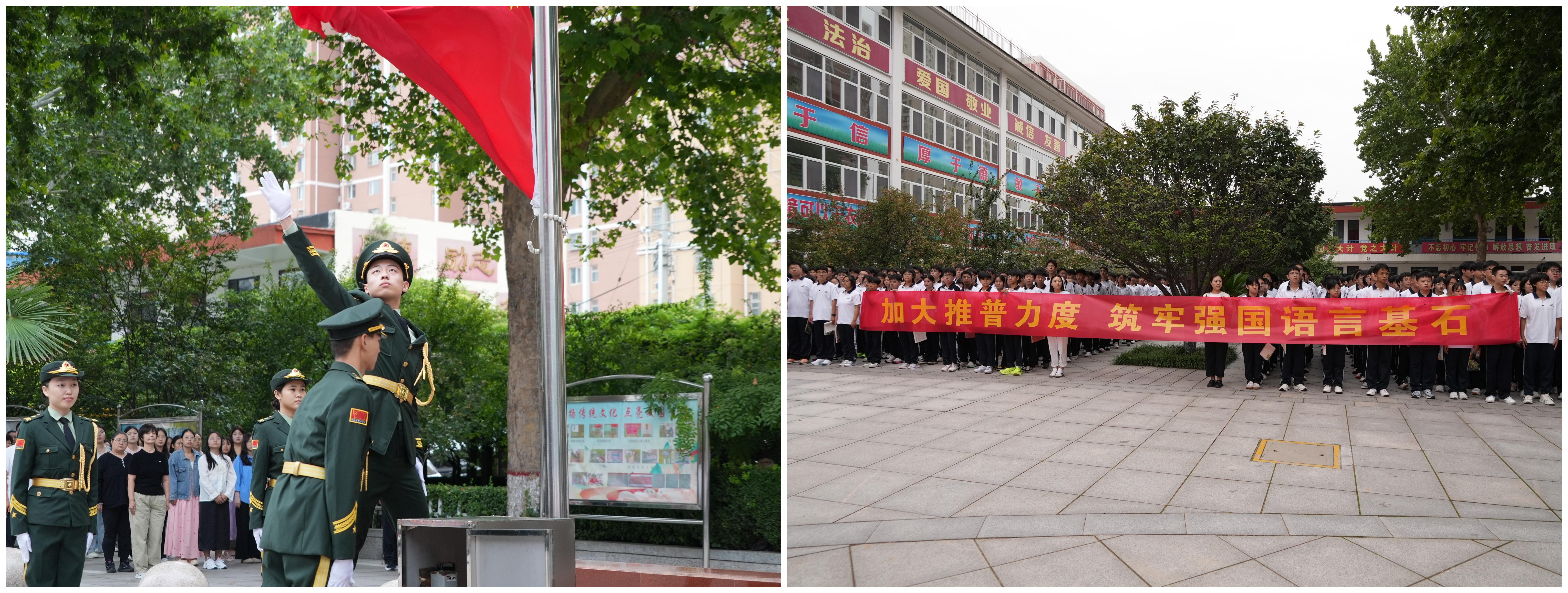 國旗下講話領航,凝聚推普思想共識。推普周啟動當天,學校舉行“推廣普通話,共筑文明校園”主題升旗儀式。學生代表以國旗下講話為載體,闡述普通話在溝通交流、文化傳承中的重要意義,呼吁全體同學將普通話作為日常交流語言,自覺規(guī)范用字用詞;校領導進一步強調(diào)推普工作對校園文化建設、學生綜合素養(yǎng)提升的作用,正式拉開推普周活動序幕。