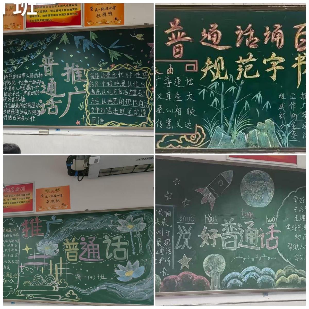 各班級圍繞推普主題設計黑板報,版面布局合理、內(nèi)容豐富多樣,既有推普知識科普,也有經(jīng)典詩詞、名言警句展示。