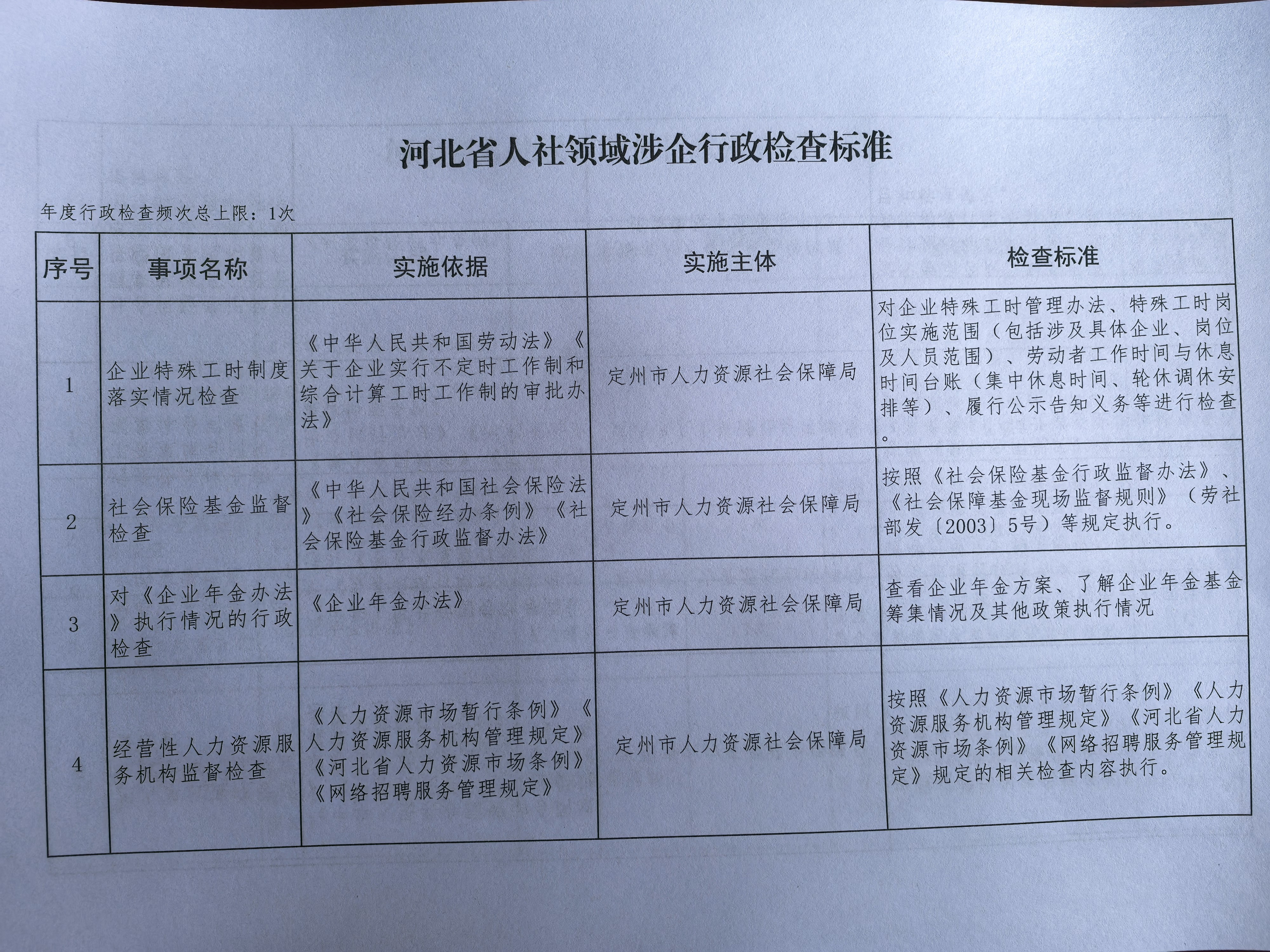 涉企行政檢查標準